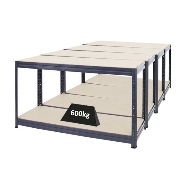 Die Werkbänke sind mittels eines Stecksystems ohne Werkzeug einfach und schnell aufzubauen. Pro Werkbank haben beiden Fachböden eine Stärke von 12 mm und sind in der Lage ein Gewicht von jeweils 600 kg zu tragen. Die Ebenen lassen sich in 50 mm Abständen in der Höhe verstellen.
