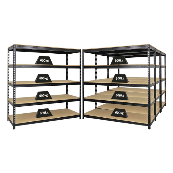 PROREGAL Mega Deal 4x Profi Schwerlastregal Bison HxBxT 200 x 200 x 60 cm 5 Fachböden Fachlast 600 kg Schwarz