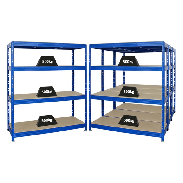 PROREGAL Mega Deal 4x Profi Schwerlastregal Rhino HxBxT 180 x 160 x 60 cm 4 Spanplatten-Ebenen 16mm Fachlast 500 kg Blau