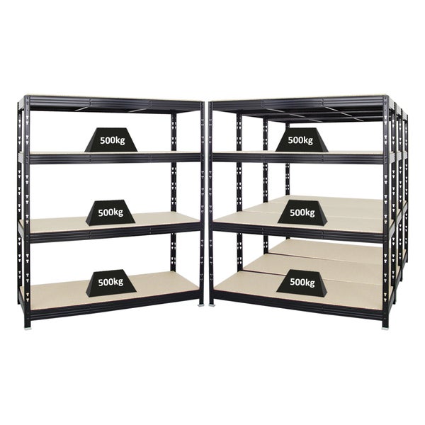 PROREGAL Mega Deal 4x Profi Schwerlastregal Rhino HxBxT 180 x 160 x 60 cm 4 Spanplatten-Ebenen 16mm Fachlast 500 kg Schwarz