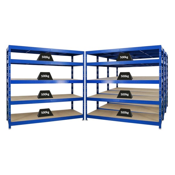 PROREGAL Mega Deal 4x Profi Schwerlastregal Rhino HxBxT 180 x 200 x 60 cm 5 Spanplatten-Ebenen 8mm Fachlast 500 kg Blau