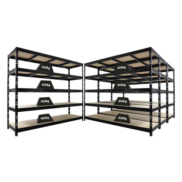 PROREGAL Mega Deal 4x Profi Schwerlastregal Rhino HxBxT 200x240x70cm 5 Spanplatten-Ebenen 8mm Fachlast 450kg Schwarz Steckregal Weitspannregal