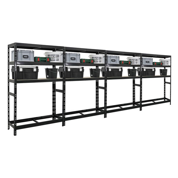 PROREGAL Mega Deal 4x Reifenregal Tiger HxBxT 180 x 120 x 40 cm bis zu 6 Reifen auf 1 Ebene mit 3 Fachboden Schwarz