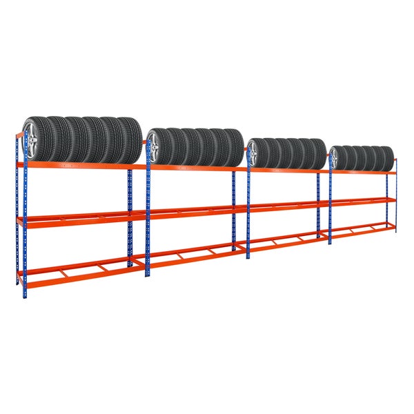 PROREGAL Mega Deal 4x Reifenregal Tiger XL HxBxT 200 x 180 x 45 cm Bis Zu 84 Reifen Blau-Orange