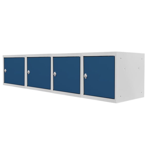 PROREGAL Mega Deal | 4x Schließfachwürfel Blocky mit Drehriegelschloss für Vorhängeschloss | HxBxT 40x40x40cm | Lichtgrau/Blau | Tresor, Schließfach
