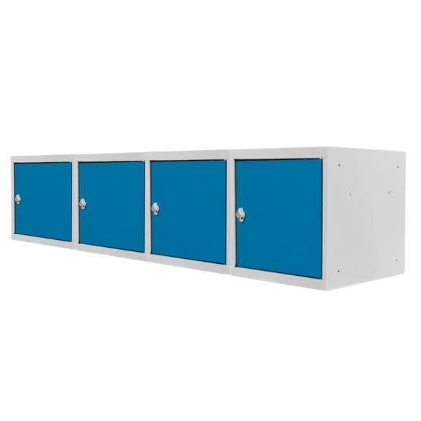 PROREGAL Mega Deal | 4x Schließfachwürfel Blocky mit Drehriegelschloss für Vorhängeschloss | HxBxT 40x40x40cm | Lichtgrau/Lichtblau | Tresor