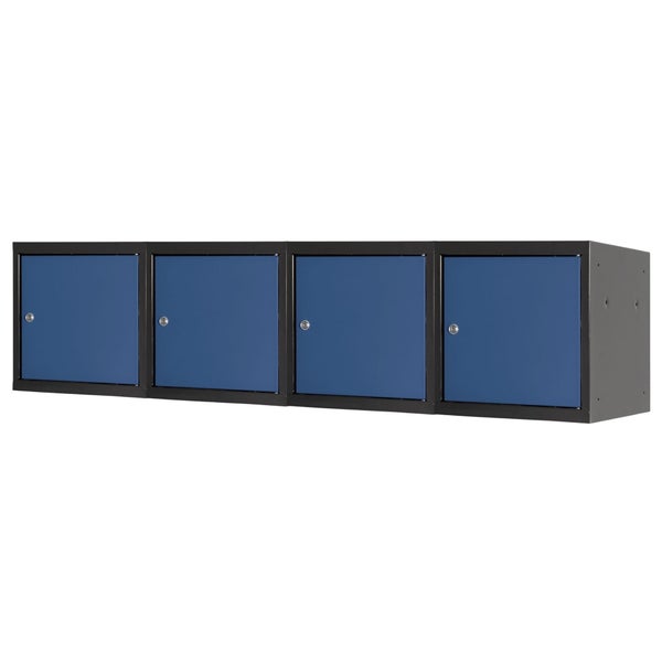 PROREGAL Mega Deal | 4x Schließfachwürfel Blocky mit Zylinderschloss + 2 Schlüssel | HxBxT 40x40x40cm | Anthrazit/Enzianblau | Tresor, Schließfach