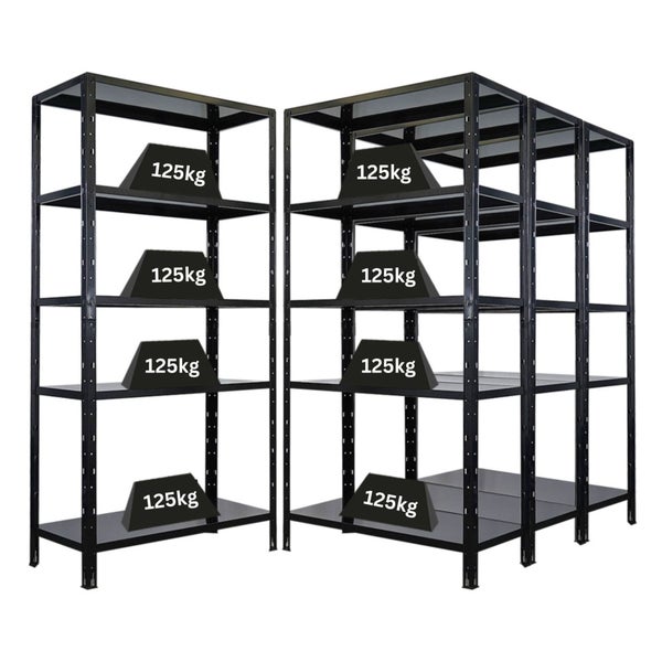 PROREGAL Mega Deal 4x Schwerlastregal Ares| HxBxT 180x90x40cm Fachlast 125 kg Schwarz, Stahl, Metallregal, Küchenregal Metallböden, Kellerregal, Steckregal, Garagenregal, Lagerregal