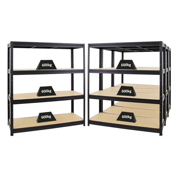 PROREGAL Mega Deal 4x Schwerlastregal Dino HxBxT 180 x 160 x 60 cm Fachlast 600 kg Schwarz