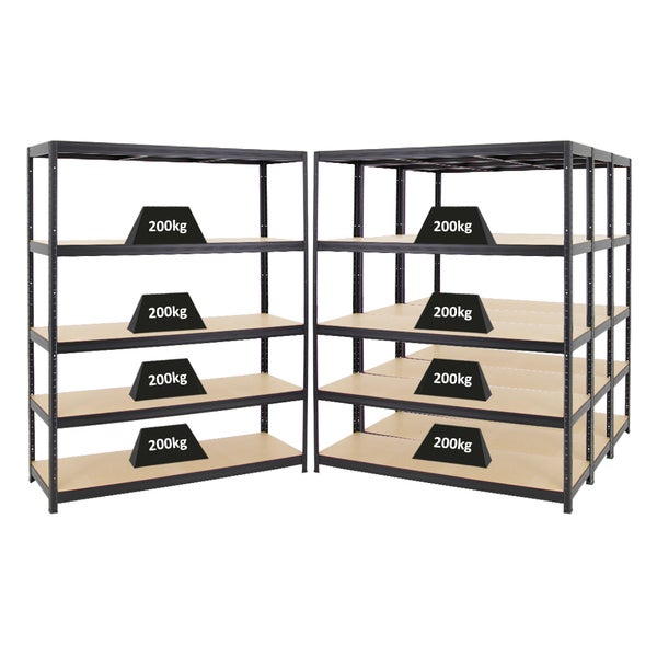 PROREGAL Mega Deal 4x Schwerlastregal Giant Elephant HxBxT 180 x 150 x 45 cm Fachlast 200 kg Schwarz