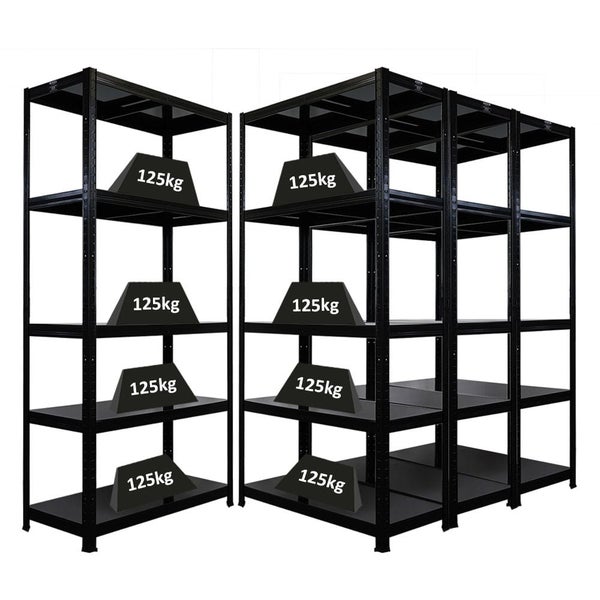 PROREGAL Mega Deal 4x Schwerlastregal Ragnar HxBxT 180x90x40cm 5 Stahlplatten-Ebenen Fachlast 125 kg Schwarz Garagenregal Metallböden Kellerregal Werkstattregal Lagerregal Steckregal