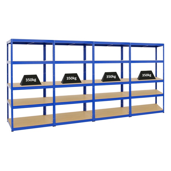 PROREGAL Mega Deal 4x Schwerlastregal Slim Elephant M HxBxT 180 x 90 x 60 cm 5 Ebenen Fachlast 350 kg Blau