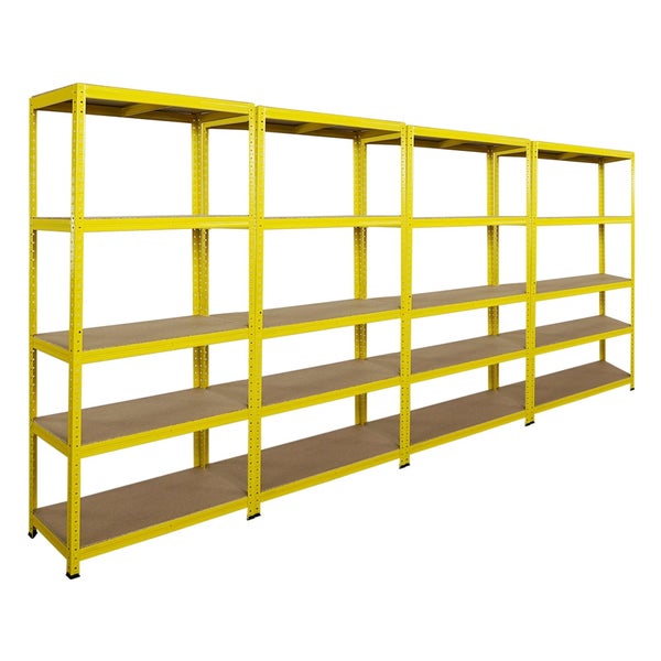 PROREGAL Mega Deal 4x Schwerlastregal YELLOW BEE, HxBxT 180x90x40cm, Fachlast 175kg, 5 Ebenen, Gelb, Kellerregal, Steckregal, Garagenregal, Lagerregal