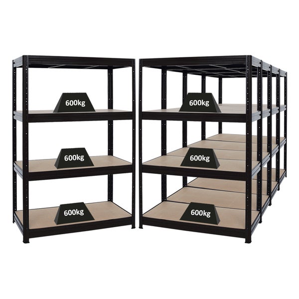 PROREGAL Mega Deal 5er-Sparset Profi-Schwerlastregal DINO HxBxT 180x120x60cm Fachlast 600kg Schwarz