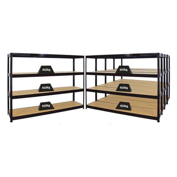 PROREGAL Mega Deal 5er-Sparset Profi-Schwerlastregal Dino HxBxT 180x240x60cm Fachlast 450kg Schwarz, Kellerregal, Steckregal, Garagenregal, Lagerregal
