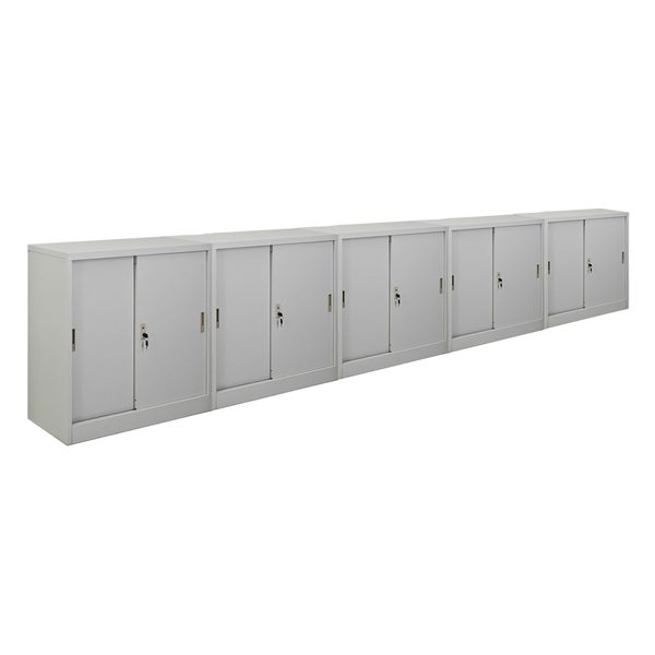 PROREGAL Mega Deal 5x Aktenschrank ELEPHANT mit Abschließbaren Schiebetüren HxBxT 90 x 90 x 40 cm 2 Fachböden Lichtgrau