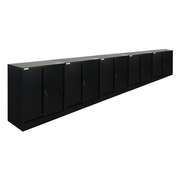 PROREGAL Mega Deal 5X Aktenschrank Elephant mit abschließbaren Schiebetüren | HxBxT 90x90x40cm | 2 Fachböden | Schwarz | Metallschrank abschließbar Lagerschrank Ordnerschrank Büroschrank
