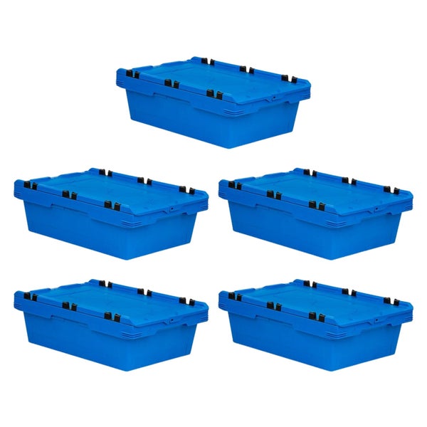 PROREGAL Mega Deal 5x Conical Mehrweg-Stapelbehälter mit Krokodildeckel Blau HxBxT 19,9 x 41 x 61cm 29 Liter Lagerbox Eurobox Transportbox