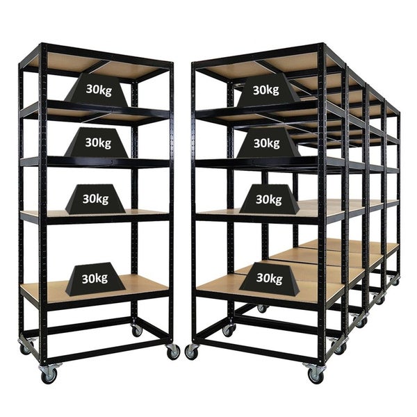 - Praktisches Set aus 5 fahrbaren Kommissionierregalen - optimale Kombination aus Lagerkapazität und Mobilität