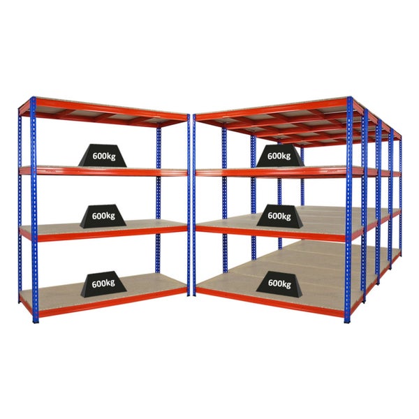 PROREGAL Mega Deal 5x Profi Schwerlastregal Bison HxBxT 200 x 180 x 60 cm 4 Fachböden Fachlast 600 kg Blau-Orange