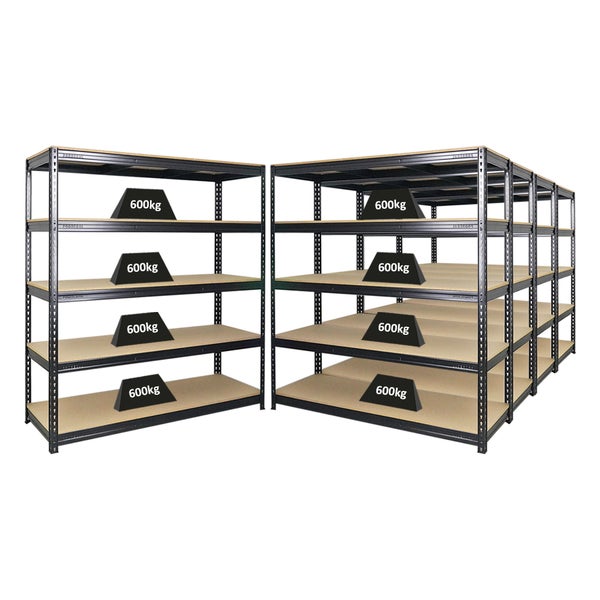 PROREGAL Mega Deal 5x Profi Schwerlastregal Bison HxBxT 200 x 180 x 60 cm 5 Fachböden Fachlast 600 kg Schwarz