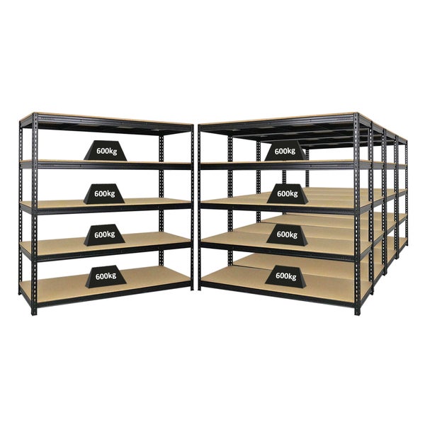 PROREGAL Mega Deal 5x Profi Schwerlastregal Bison HxBxT 200 x 200 x 60 cm 5 Fachböden Fachlast 600 kg Schwarz