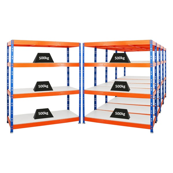 PROREGAL Mega Deal 5x Profi Schwerlastregal Rhino HxBxT 180 x 160 x 60 cm 4 Melamin-Ebenen 16mm Fachlast 500 kg Blau-Orange