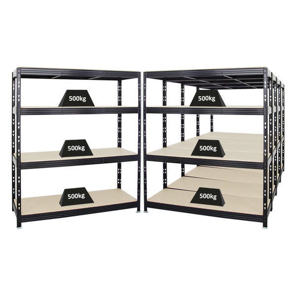 PROREGAL Mega Deal 5x Profi Schwerlastregal Rhino HxBxT 180 x 160 x 60 cm 4 Spanplatten-Ebenen 16mm Fachlast 500 kg Schwarz