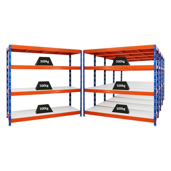 PROREGAL Mega Deal 5x Profi Schwerlastregal Rhino HxBxT 180 x 200 x 60 cm 4 Melamin-Ebenen 16mm Fachlast 500 kg Blau-Orange