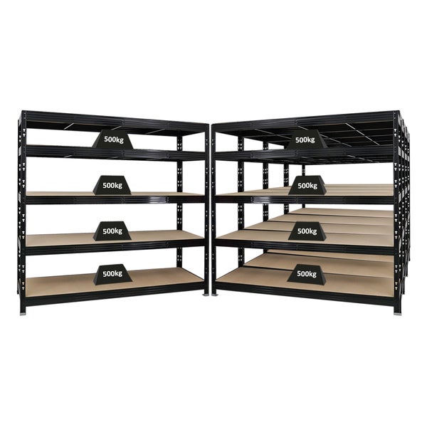 PROREGAL Mega Deal 5x Profi Schwerlastregal Rhino HxBxT 180 x 200 x 60 cm 5 Spanplatten-Ebenen 8mm Fachlast 500 kg Schwarz