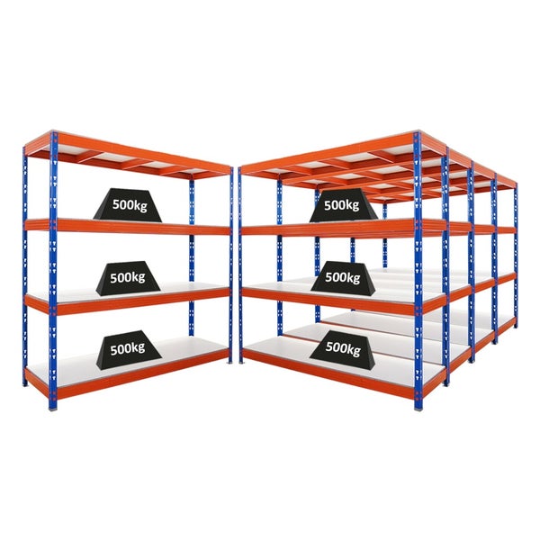 PROREGAL Mega Deal 5x Profi Schwerlastregal Rhino HxBxT 200x200x60cm 4 Melamin-Ebenen 16mm Fachlast 500kg Blau-Orange