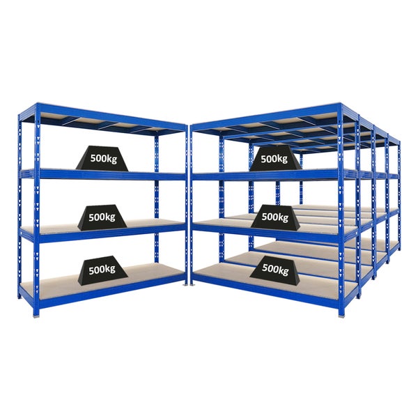 PROREGAL Mega Deal 5x Profi Schwerlastregal Rhino HxBxT 200x200x60cm 4 Spanplatten-Ebenen 16mm Fachlast 500kg Blau