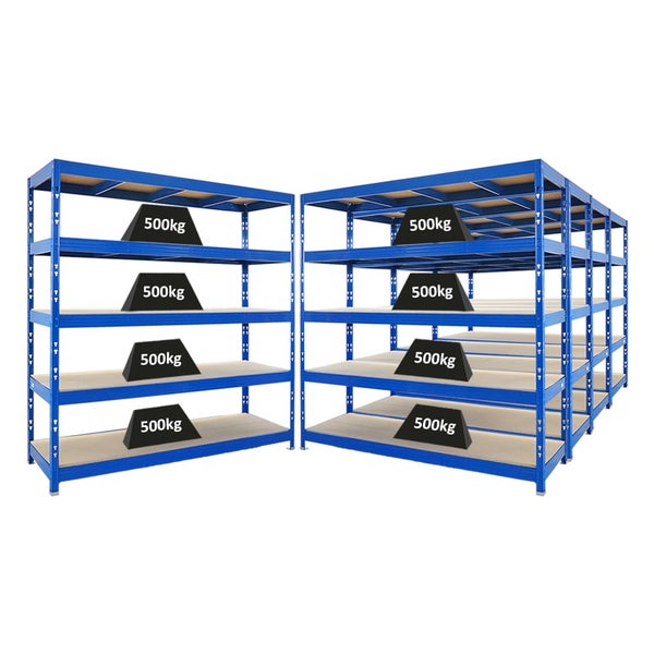 PROREGAL Mega Deal 5x Profi Schwerlastregal Rhino HxBxT 200x200x60cm 5 Spanplatten-Ebenen 8mm Fachlast 500kg Blau