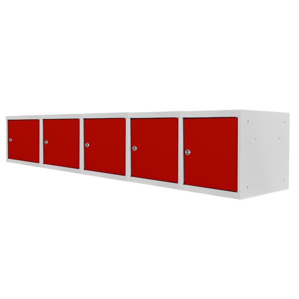 PROREGAL Mega Deal | 5x Schließfachwürfel Blocky mit Zylinderschloss + 2 Schlüssel | HxBxT 40x40x40cm | Lichtgrau/Rot | Tresor, Schließfach