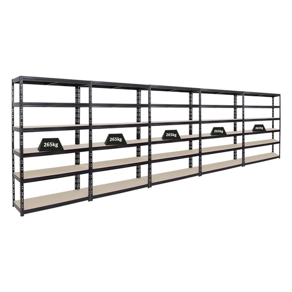 PROREGAL Mega Deal 5x Schwerlastregal Giant Tiger HxBxT 200 x 120 x 40 cm Fachlast 265 kg 6-Ebenen Schwarz
