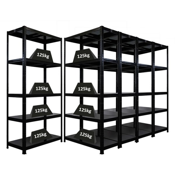 PROREGAL Mega Deal 5x Schwerlastregal Ragnar HxBxT 180x90x40cm 5 Stahlplatten-Ebenen Fachlast 125 kg Schwarz Garagenregal Metallböden Kellerregal Werkstattregal Lagerregal Steckregal