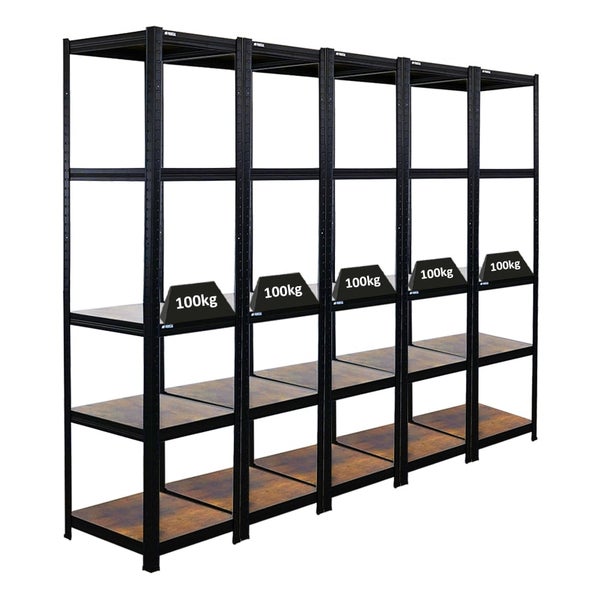 PROREGAL Mega Deal 5x Vintage Series Schwerlastregal Ragnar HxBxT 180x45x45cm Fachlast 100kg Vintagebraun-Schwarz, Steckregal, Garagenregal, Lagerregal