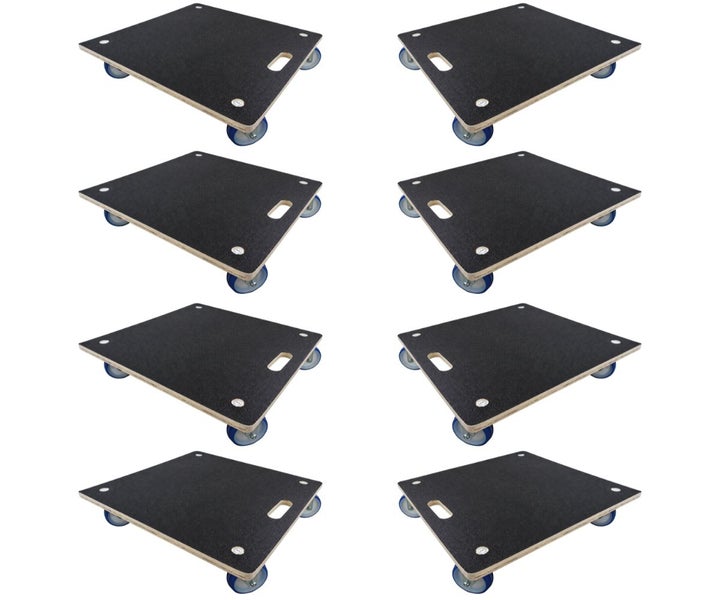 PROREGAL Mega Deal 8x Profi Transportroller mit 4 Rollen | HxBxT 15x58x58 cm | Traglast 300 kg | Siebdruck Holzplatte | Schwarz | Möbelhund Rollbrett