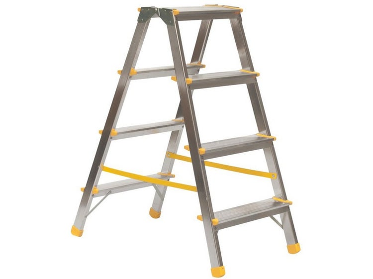 PROREGAL Metal Double Giraffe Doppelseitige-Aluminium-Stufenstehleiter 4 Stufen 86 cm Hoch 150 kg Tragkraft Leiter Trittleiter Haushaltsleiter