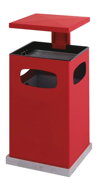 Metall Ascher-Papierkorb mit abnehmbarem Dach und drei Einwurfmöglichkeiten. Ausgestattet mit Inneneimer aus Metall, schwarzer Einsatz und verchromten Sieb. Inklusive Befestigungsmaterial für Bodenmontage.