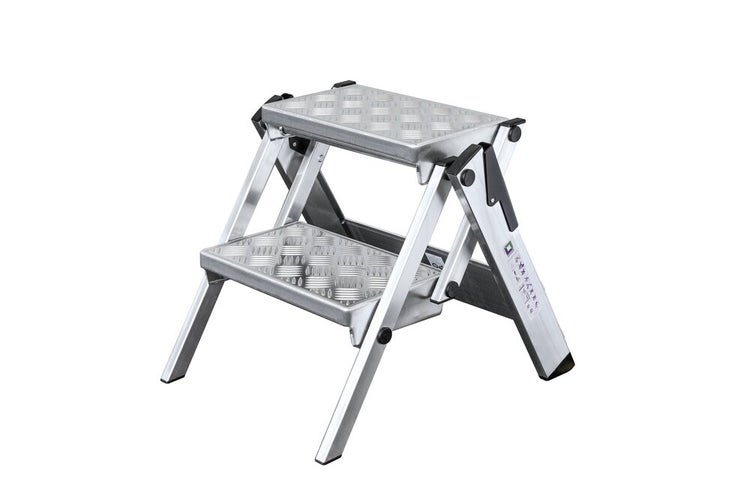 PROREGAL ML Kompakt-Tritt Mit Klappmechanismus 2 Stufen Aluminium-Warzenblech Rutschfeste Kunststoffschuhe