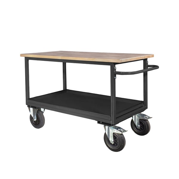 PROREGAL Mobile Werkbank mit 2 Etagen und Schiebegriff | HxBxT 82,7x130x60cm | Anthrazitgrau | Werkstattwagen, Transport