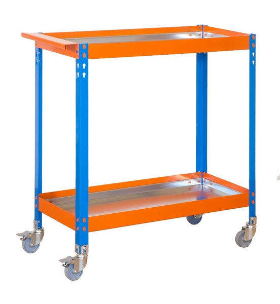 PROREGAL Montagewagen Transportwagen Muli Metal HxBxT 103x90x40 cm 2 Metalböden Blau-Orange