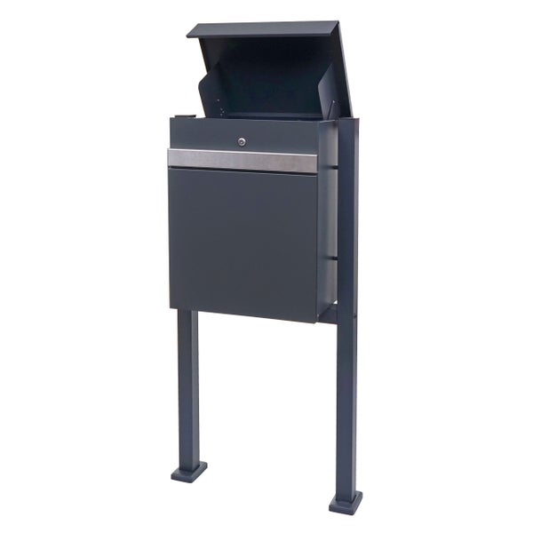 PROREGAL Paketkasten mit Standfuß HxBxT 120x59x36cm Paketbox Paketstation Standbriefkasten Metall verzinkt anthrazit-Edelstahl