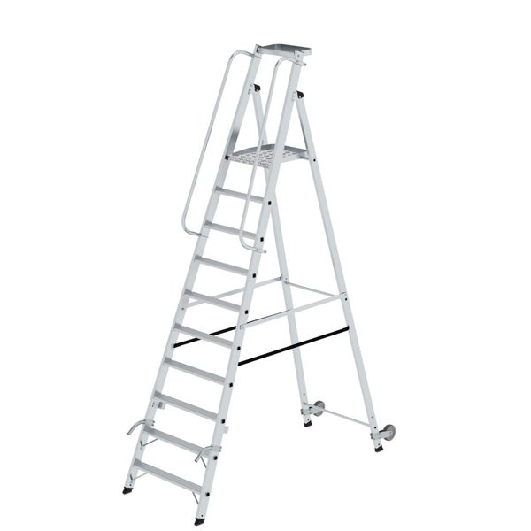 PROREGAL Plattformleiter Mit Rollen und Griff 10 Stufen Inkl. Beidseitigem Handlauf Aluminium Nivello Leiterschuhe