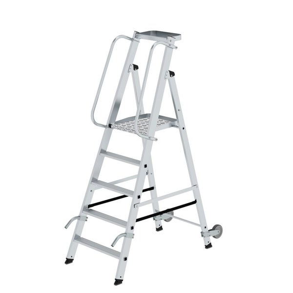 PROREGAL Plattformleiter Mit Rollen und Griff 5 Stufen Inkl. Beidseitigem Handlauf Aluminium Nivello Leiterschuhe