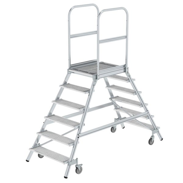 PROREGAL Podesttreppe Beidseitig Begehbar Mit Federrollen Stahl-Gitterrost 6 Stufen Rutschsichere Leiterschuhe