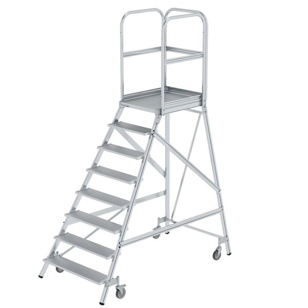 PROREGAL Podesttreppe Einseitig Begehbar Mit Federrollen Aluminium Geriffelt 8 Stufen Rutschsichere Leiterschuhe