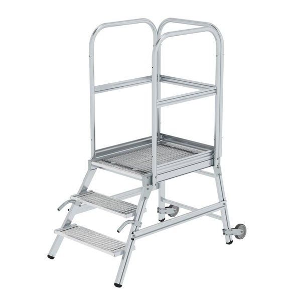 PROREGAL Podesttreppe Einseitig Begehbar Mit Rollen und Griffen Stahl-Gitterrost 3 Stufen Rutschsichere Leiterschuhe