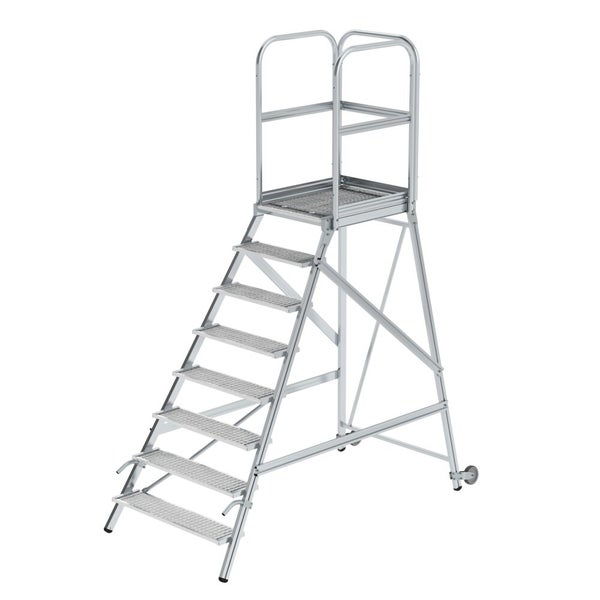 PROREGAL Podesttreppe Einseitig Begehbar Mit Rollen und Griffen Stahl-Gitterrost 8 Stufen Rutschsichere Leiterschuhe